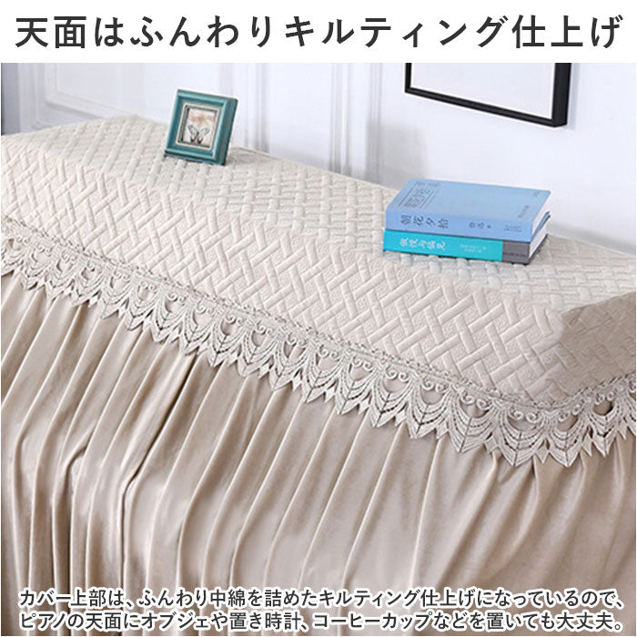 ・カバー上部は、ふんわり中綿を詰めたキルティング仕上げになっているので、ピアノの天面にオブジェや置き時計、コーヒーカップなどを置いても大丈夫。