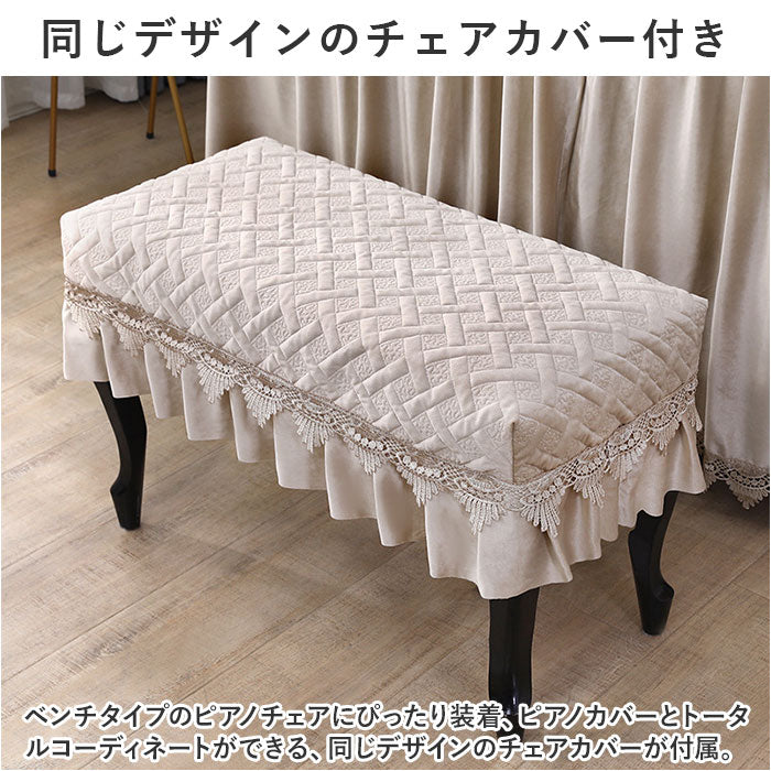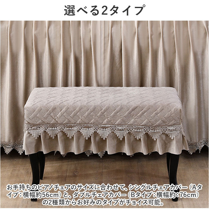 ・ベンチタイプのピアノチェアにぴったり装着、ピアノカバーとトータルコーディネートができる、同じデザインのチェアカバーが付属。