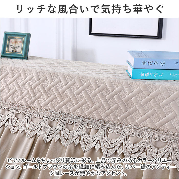 ・ピアノルームをちょっぴり贅沢に彩る、上品で深みのあるカラーバリエーション。ゴールドブラウンの糸を繊細に編み込んだ、カバー裾のアンティーク風レースが艶やかなアクセント。