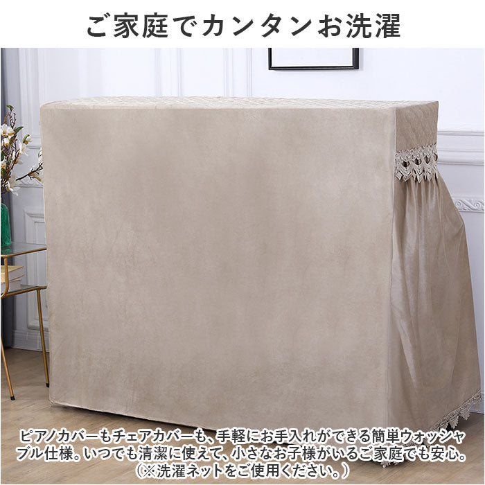 ・ピアノカバーもチェアカバーも、手軽にお手入れができる簡単ウォッシャブル仕様。いつでも清潔に使えて、小さなお子様がいるご家庭でも安心。(※洗濯ネットをご使用ください。)