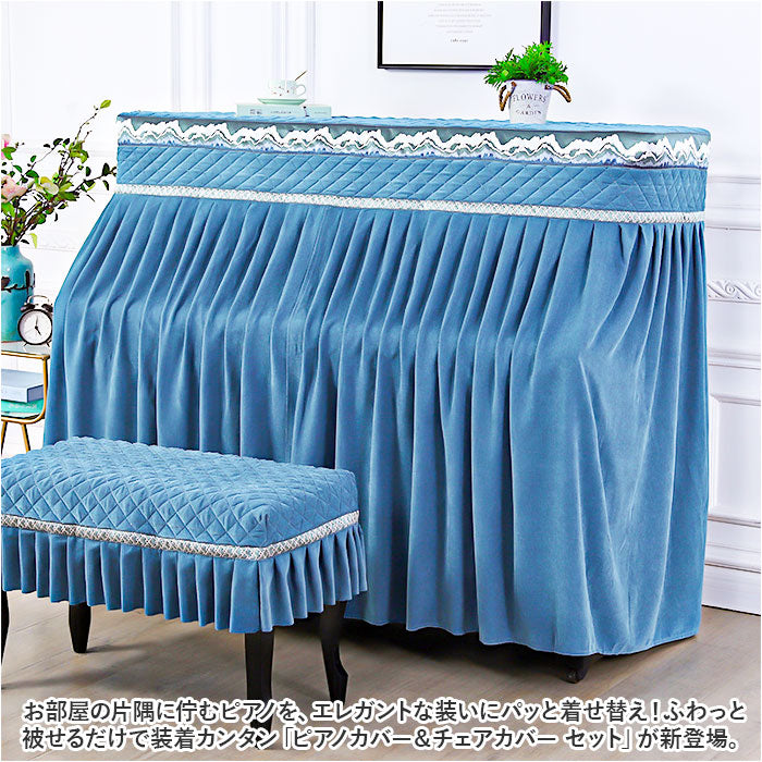 ・お部屋の片隅に佇むピアノを、エレガントな装いにパッと着せ替え!ふわっと被せるだけで装着カンタン「ピアノカバー&チェアカバー セット」が新登場。