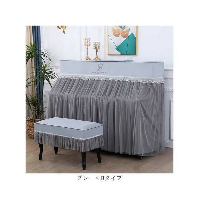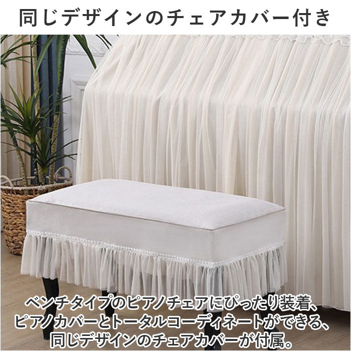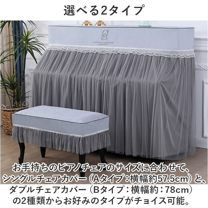 ・お部屋の片隅に佇むピアノを、エレガントな装いにパッと着せ替え!ふわっと被せるだけで装着カンタン「ピアノカバー&チェアカバー セット」が新登場。
