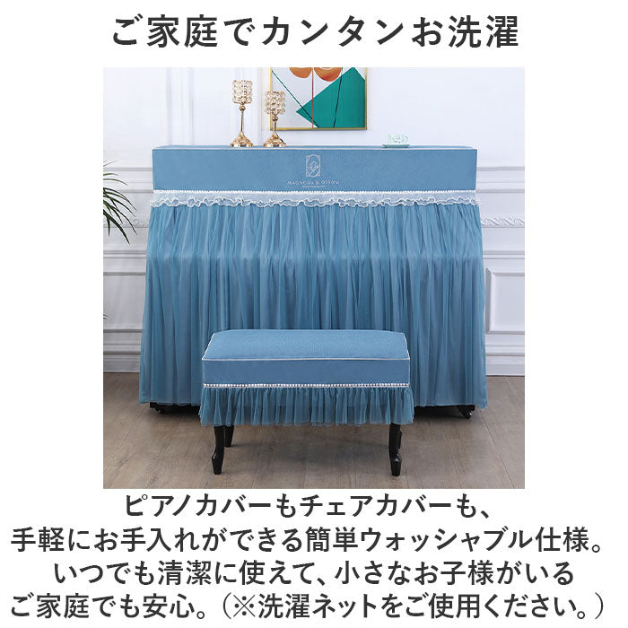 ・ピアノカバーもチェアカバーも、手軽にお手入れができる簡単ウォッシャブル仕様。いつでも清潔に使えて、小さなお子様がいるご家庭でも安心。(※洗濯ネットをご使用ください。)