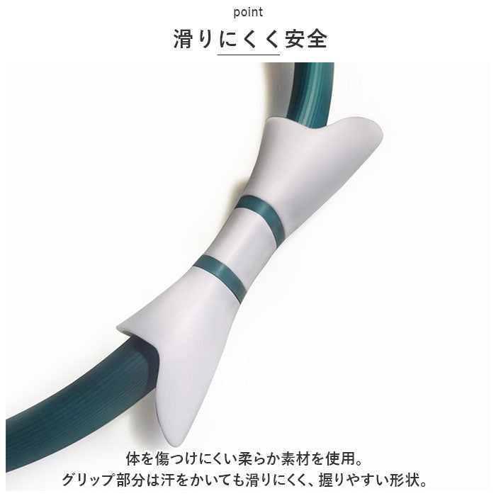 ・弾力のあるリングの両側に配置されたグリップを握り、押したり引っ張ったりするだけ。二の腕やお腹周り、足などあらゆる部位に対応。