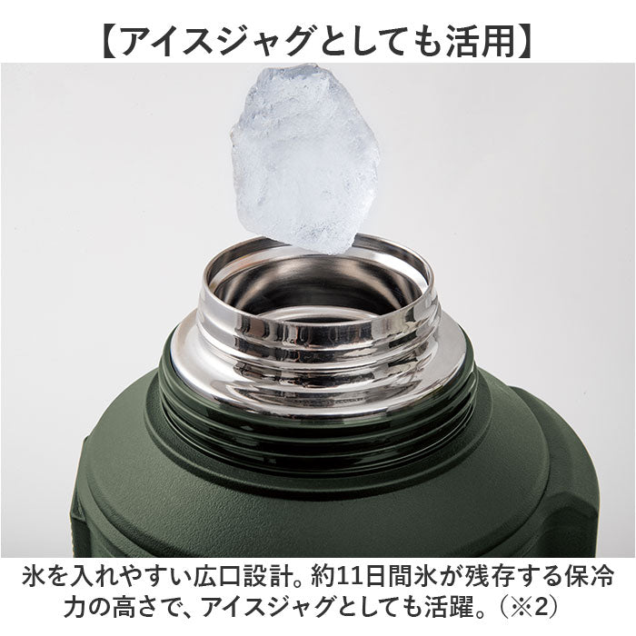 ・氷を入れやすい広口設計。約11日間氷が残存する保冷力の高さで、アイスジャグとしても活躍。