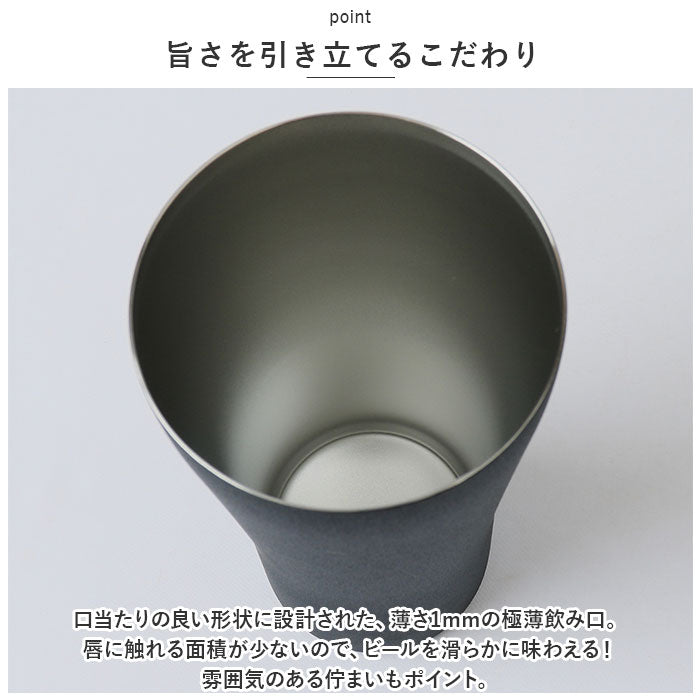 ・口当たりの良い形状に設計された、薄さ1mmの極薄飲み口。唇に触れる面積が少ないので、ビールを滑らかに味わえる!雰囲気のある佇まいもポイント。