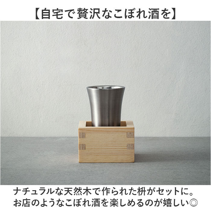 ・ナチュラルな天然木で作られた枡がセットに。お店のようなこぼれ酒を楽しめるのが嬉しい◎