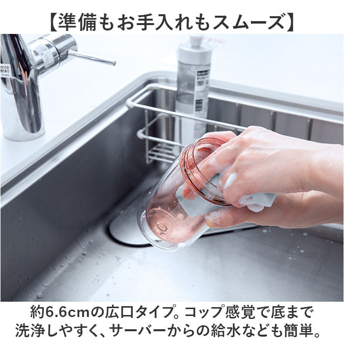 ・約6.6cmの広口タイプ。コップ感覚で底まで洗浄しやすく、サーバーからの給水なども簡単。