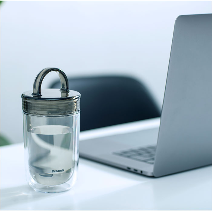 ・美しい浮遊感が特徴のダブルウォール仕様。外側の結露を防いで、まわりを濡らさず快適。