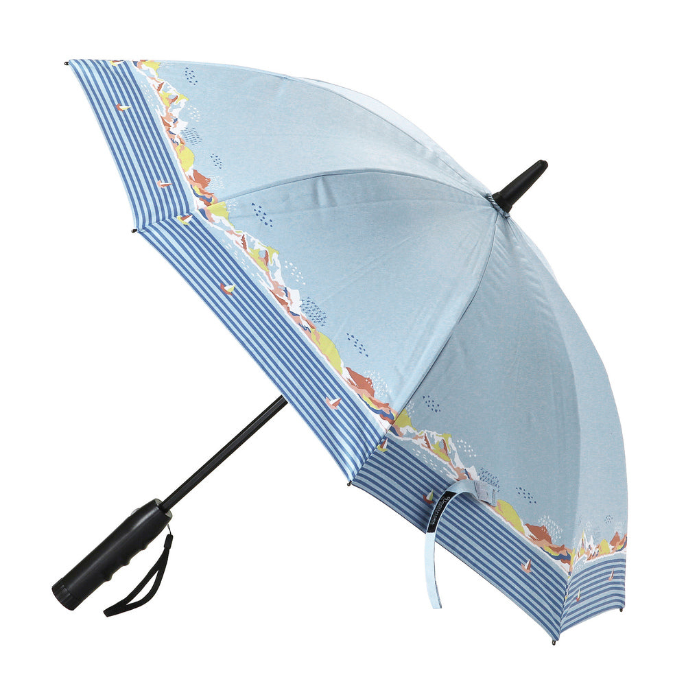 ・UVカット率99.9%、遮光率99.9%、傘の内側には遮熱効果のあるコーティングが施された晴雨兼用傘。紫外線の照り返しもしっかりと防いでくれる。