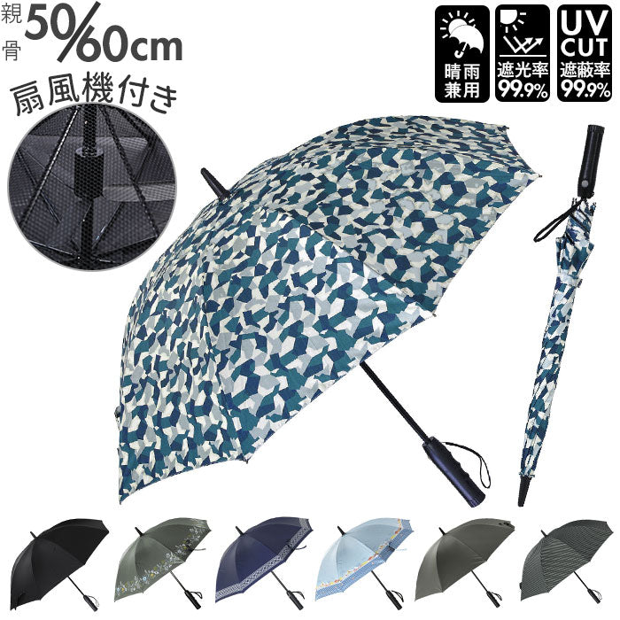 ファンファンパラソル 扇風機付き日傘 通販 遮光 遮熱 晴雨兼用 長傘 UVカット率99.9% 遮光率99.99% PUブラックコーティング 親骨50cm 直径89cm レディース 親骨60cm 直径104cm メンズ おしゃれ かわいい シンプル パラソル SPICE OF LIFE HHLG2140 晴雨兼用傘