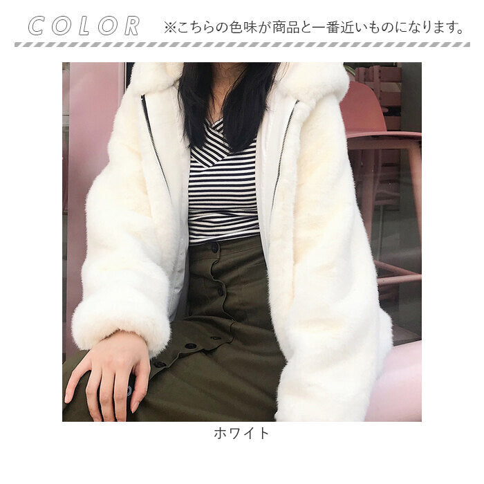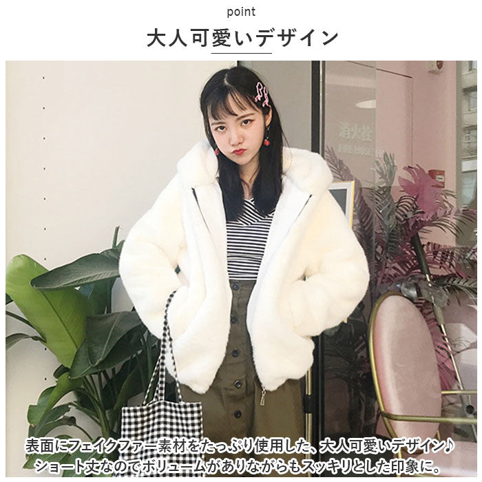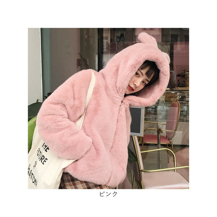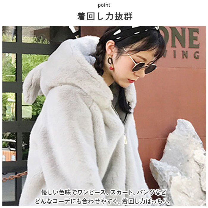 ファーコート レディース 耳 通販 コート ボリュームファーコート フェイクファー フード付き ジャケット 羽織 羽織り 厚め もこもこ ボリューム もふもふ 冬 アウター かわいい おしゃれ