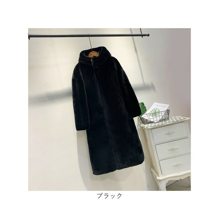 ファーコート レディース 通販 コート ボリュームファーコート ロングコート フェイクファー フード付き ロング ロング丈 暖かい もこもこ ボリューム もふもふ 冬 かわいい アウター
