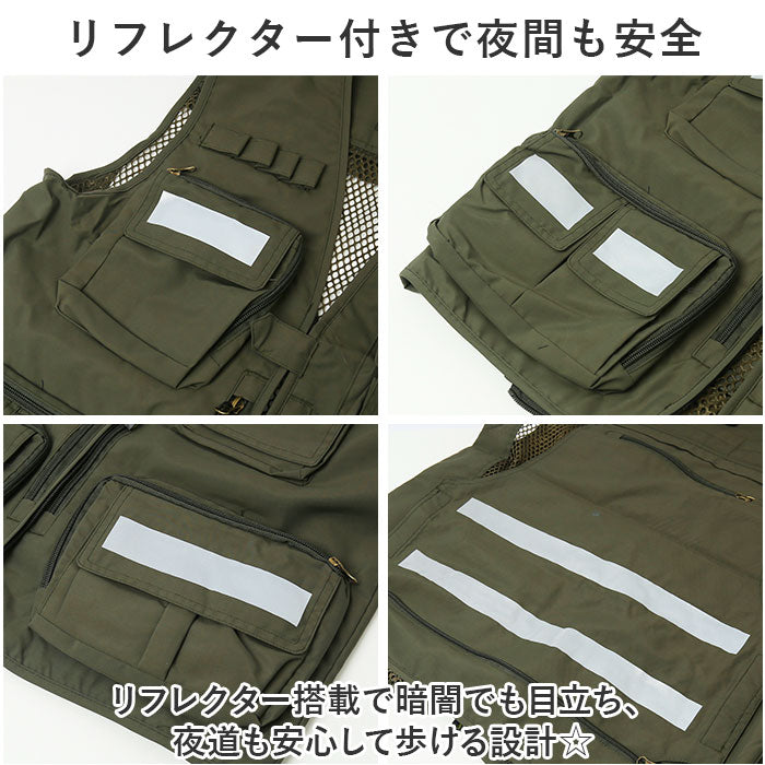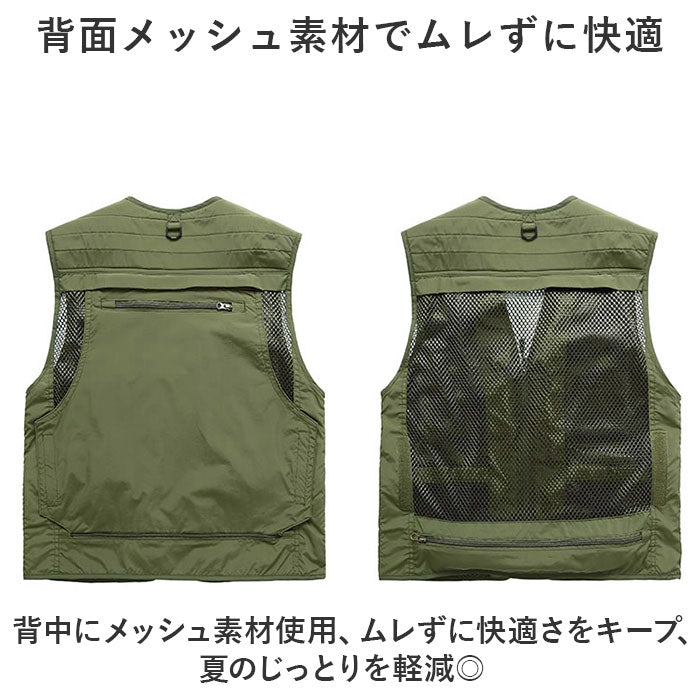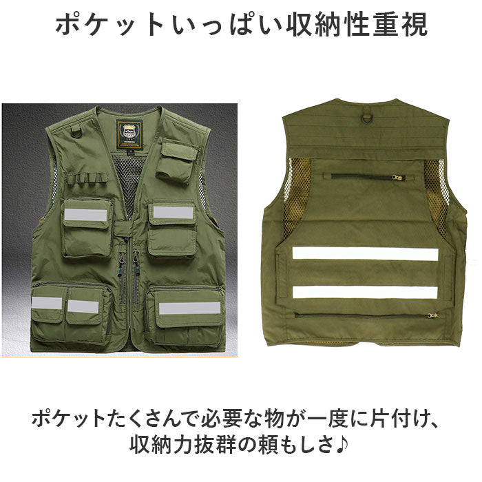 フィッシングベスト 登山 釣り ベスト メッシユ 通販 ジレ ジャケット 釣りベスト カメラマンベスト ワークベスト チョッキ 作業着 ワーク服 作業服 ジップアップ ポケット 速乾性 通気性