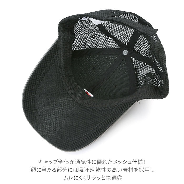 ・キャップ全体が通気性に優れたメッシュ仕様!額に当たる部分には吸汗速乾性の高い素材を採用し、ムレにくくサラッと快適◎