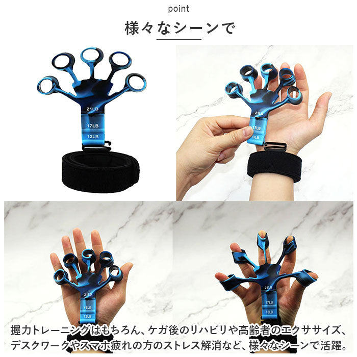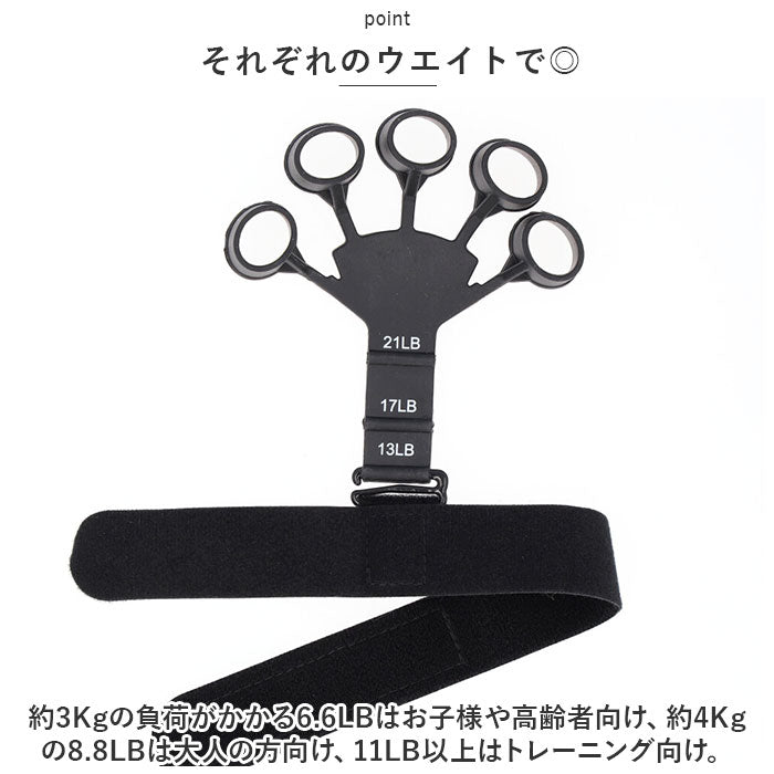 ・指穴に指をセットし、グッと指を曲げ伸ばしをするだけのシンプル設計。簡単でお手軽なので、誰でもどこでもトレーニングができる☆