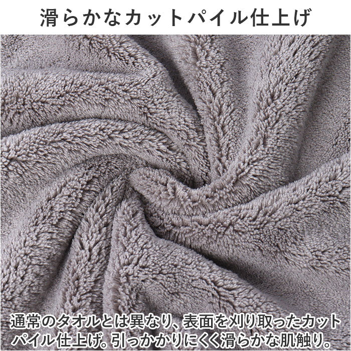 ・通常のタオルとは異なり、表面を刈り取ったカットパイル仕上げ。引っかかりにくく滑らかな肌触り。