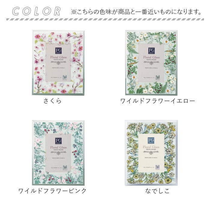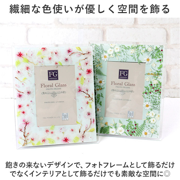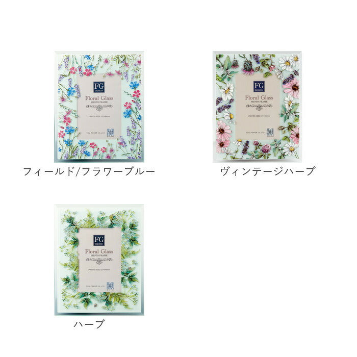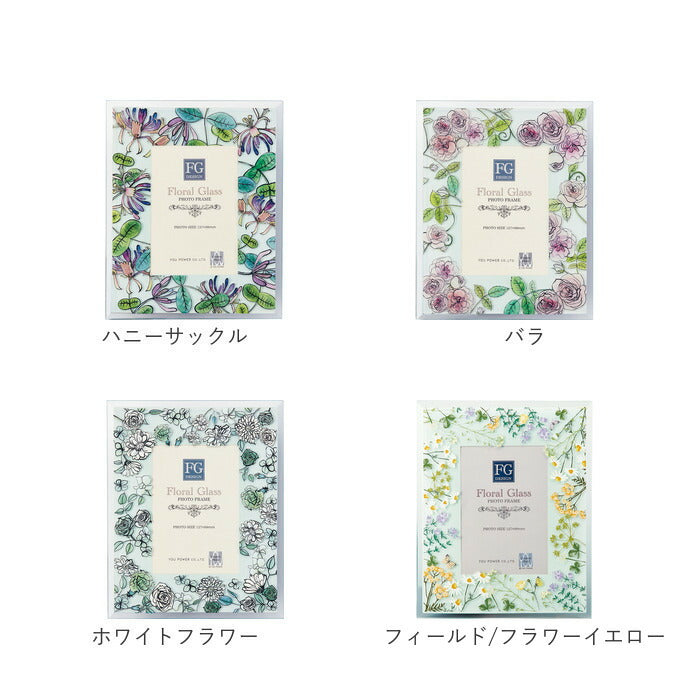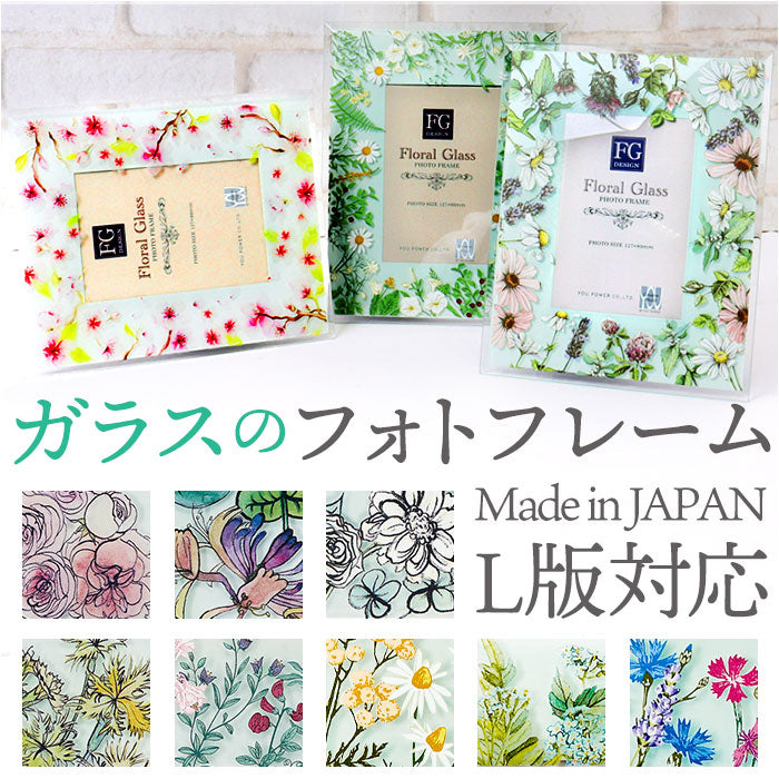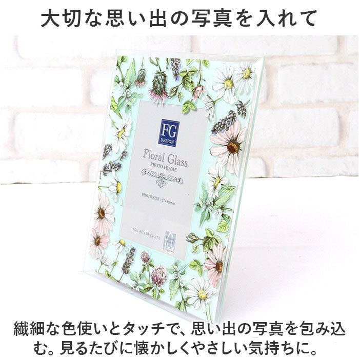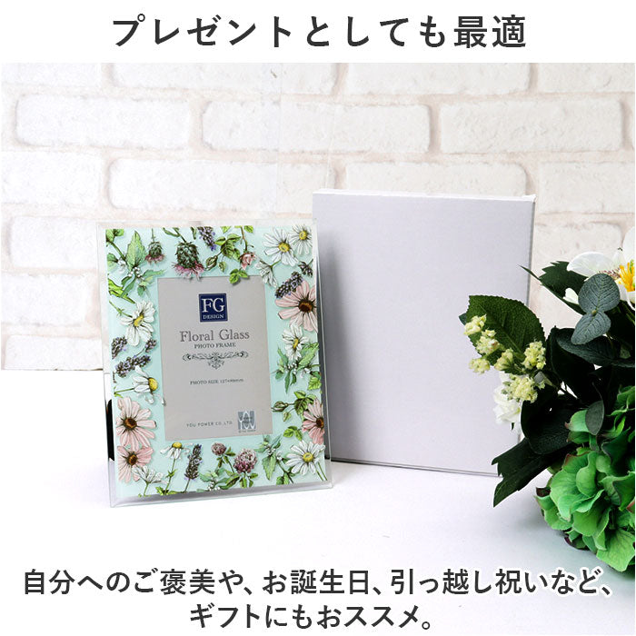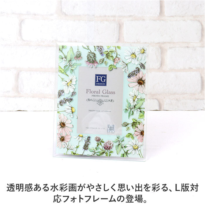 フォトフレーム おしゃれ 通販 写真立て フォトスタンド 写真たて ガラスフレーム スタンド 16×19.5 L判 かわいい 可愛い 立て掛け式 クリア 花柄 フラワー 誕生日 ギフト お祝い