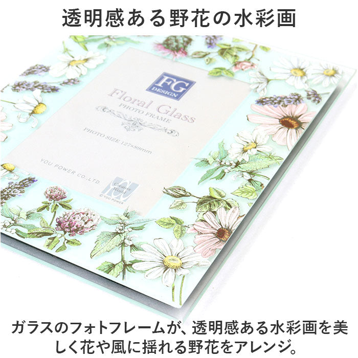 ・ガラスのフォトフレームが、透明感ある水彩画を美しく花や風に揺れる野花をアレンジ。
