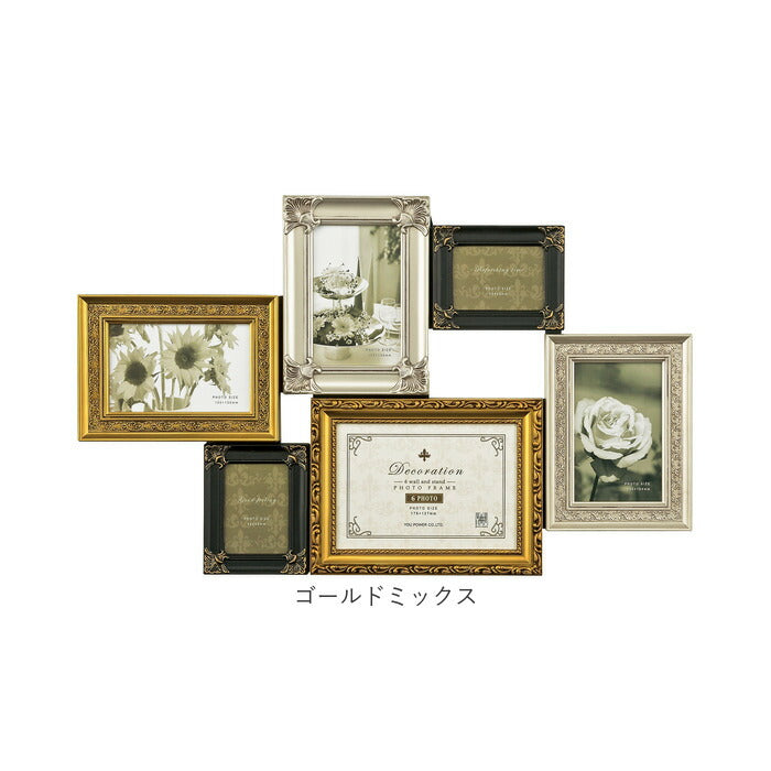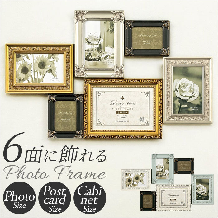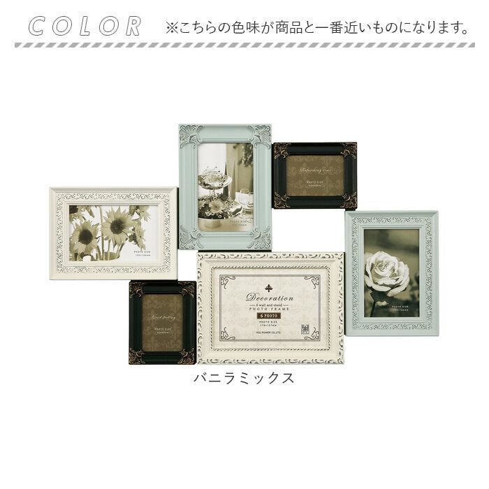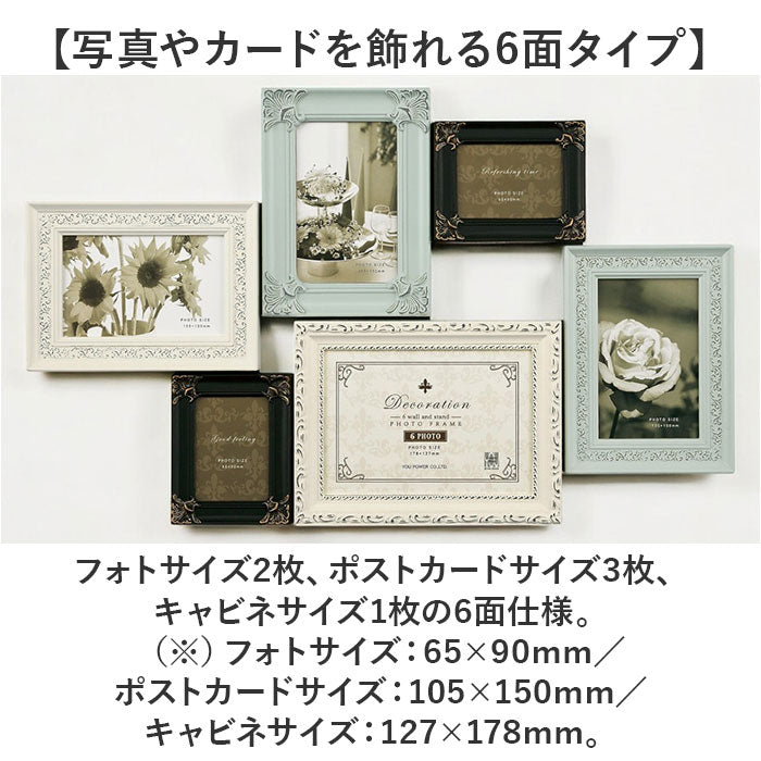 フォトフレーム 壁掛け おしゃれ 通販 デコレーション 6 ウォール&スタンド フォトスタンド 写真立て フォト フレーム 写真 スタンド 6枚 6面 アンティーク調 卓上 立て掛け L判ハーフ