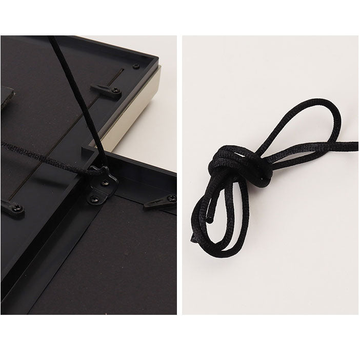・フレームの金具に付属の紐を結び付けて壁掛け。背面にスタンド付きで卓上にも置ける2way☆