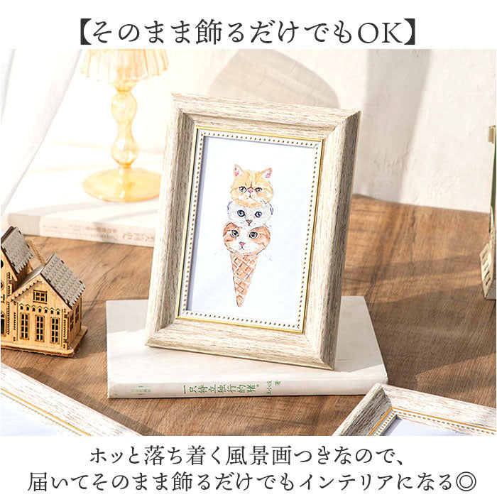 ・ホッと落ち着く風景画つきなので、届いてそのまま飾るだけでもインテリアになる◎