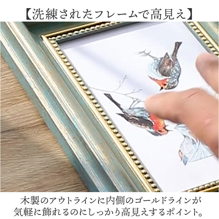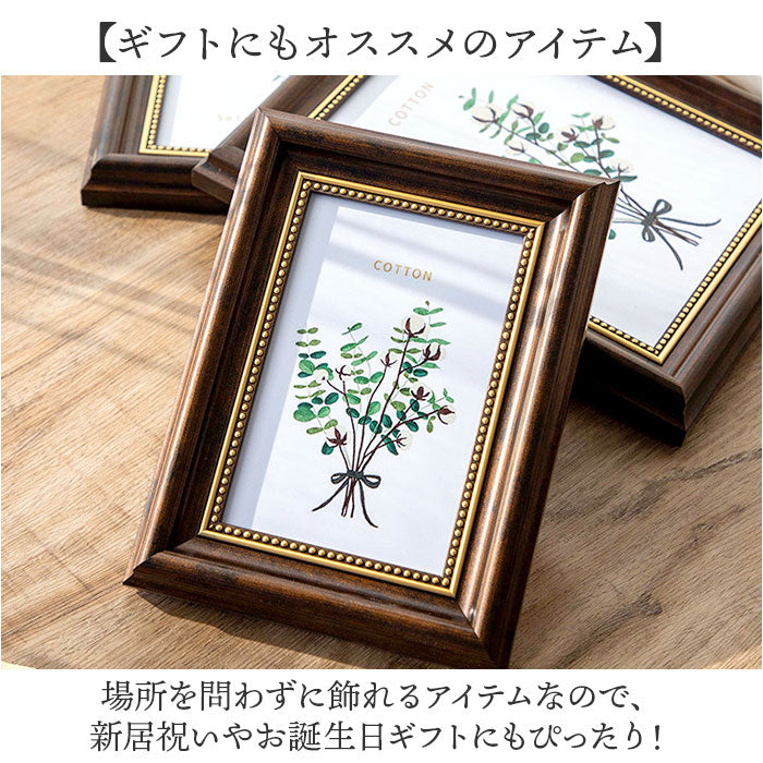・木製のアウトラインに内側のゴールドラインが気軽に飾れるのにしっかり高見えするポイント。