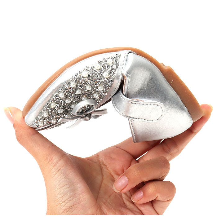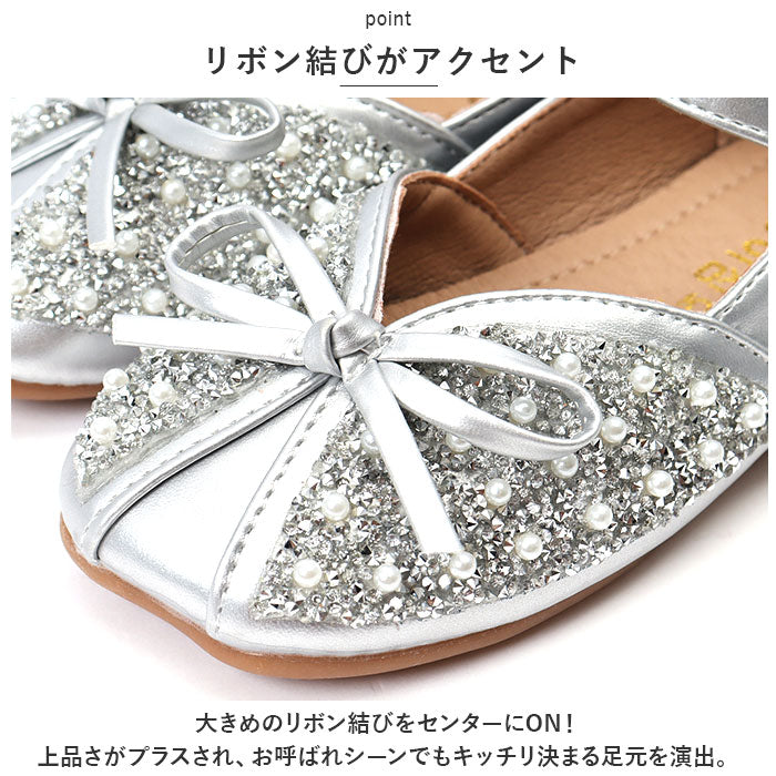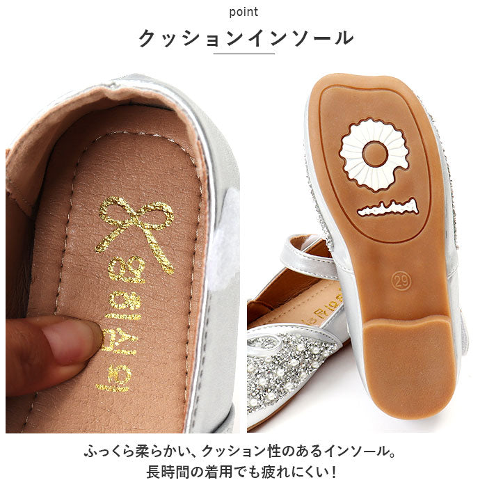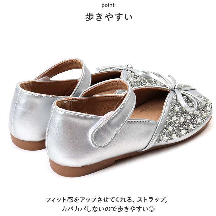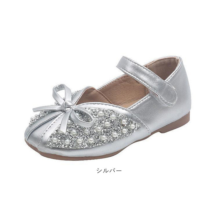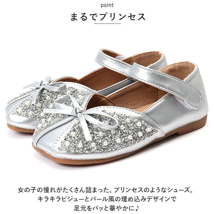 ・女の子の憧れがたくさん詰まった、プリンセスのようなシューズ。キラキラビジューとパール風の埋め込みデザインで足元をパッと華やかに♪