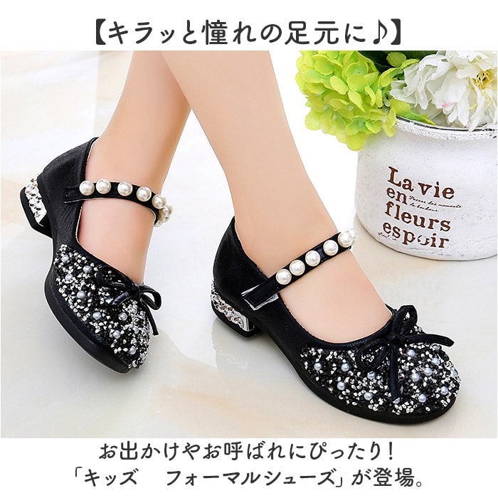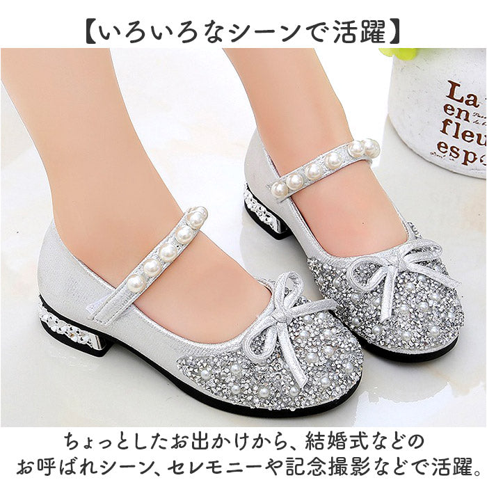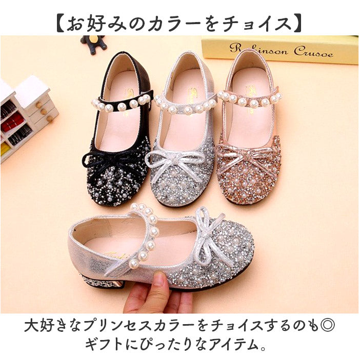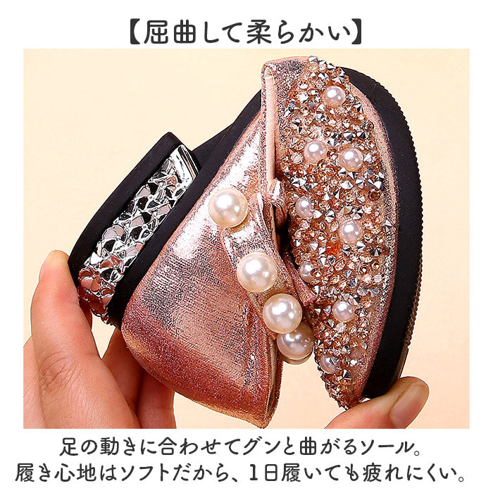 ・キラッとグリッター、イミテーションパール、リボンなど可愛さ満点!女の子の憧れシューズ。