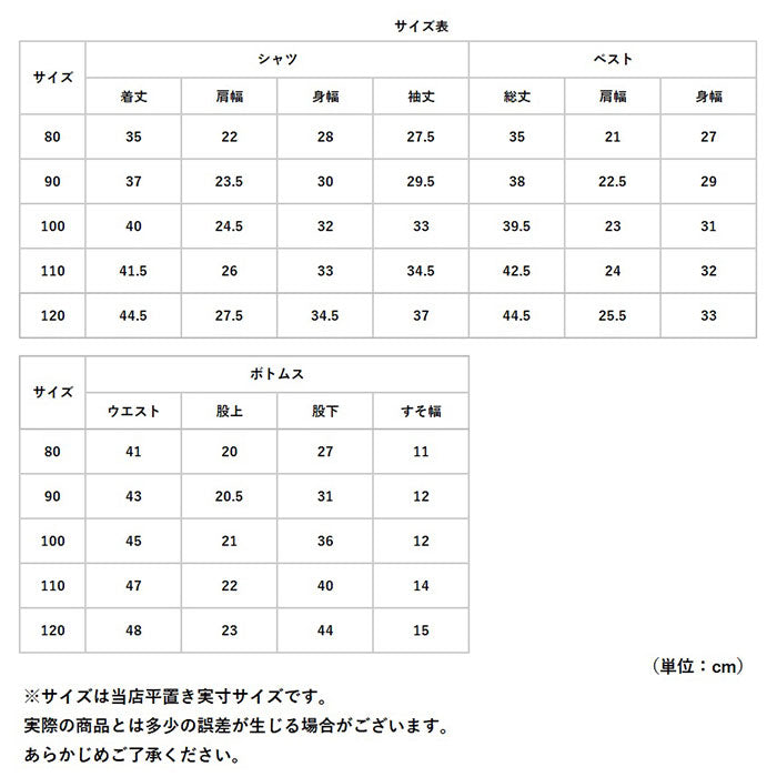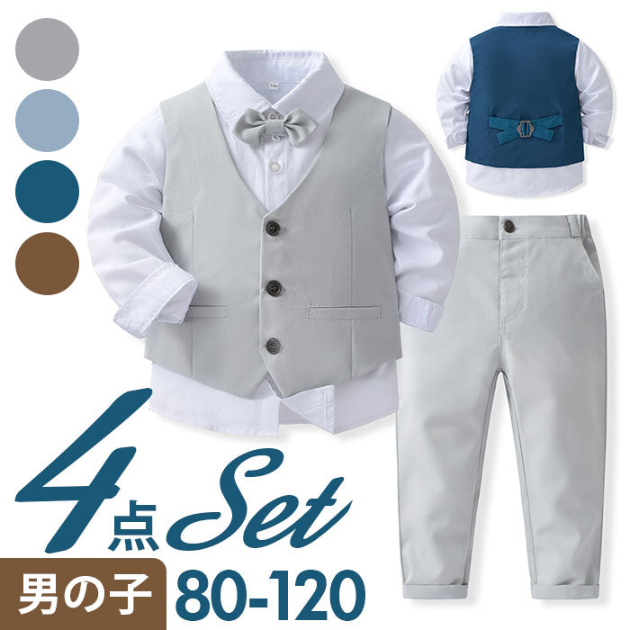 ・ベスト、長袖シャツ、ロングパンツ、蝶ネクタイの4点セット。大人顔負けのかっこいいスタイリングが完成☆