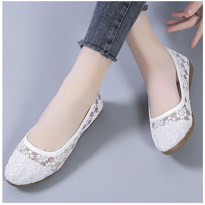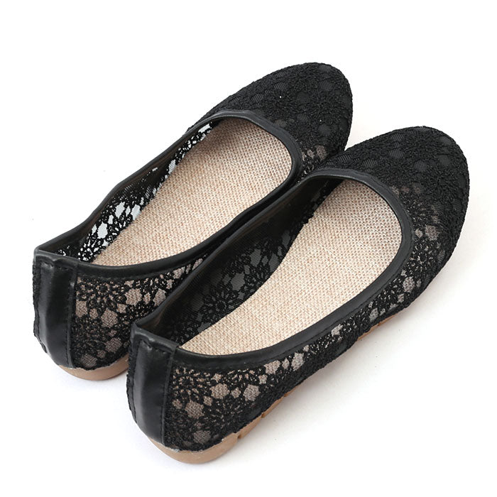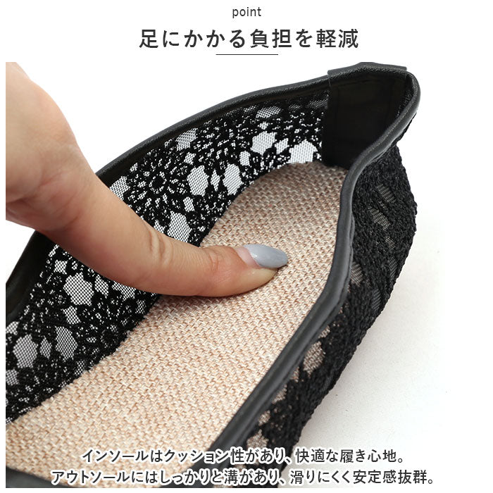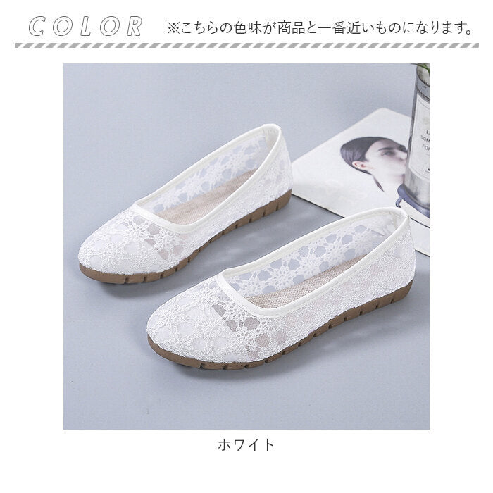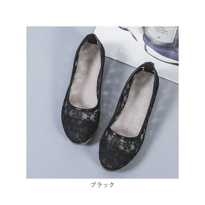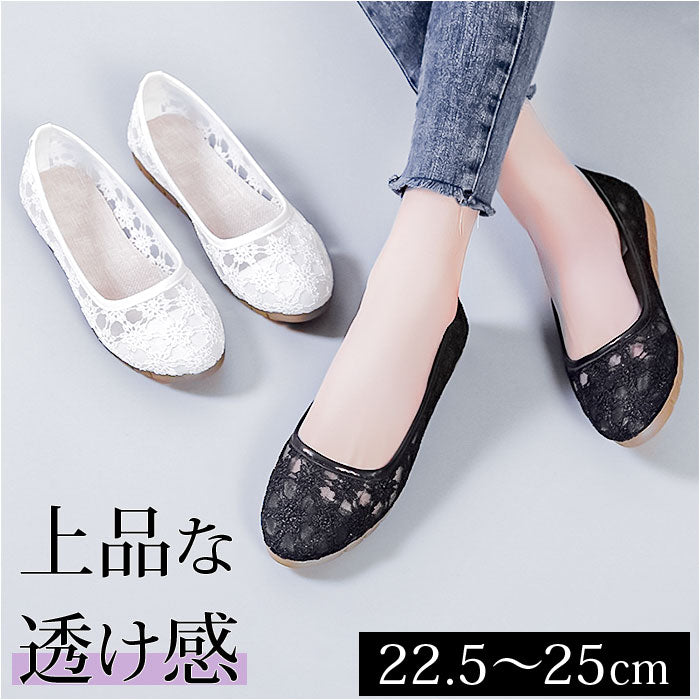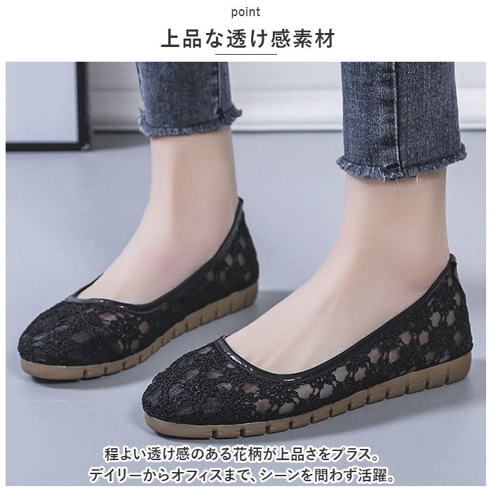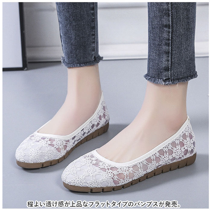 フラット パンプス 歩きやすい 通販 フラットパンプス レースパンプス フラットシューズ レース 透け感 ローヒール ラウンドトゥ 痛くない 疲れない 柔らかい ぺたんこ 通気性 メッシュ