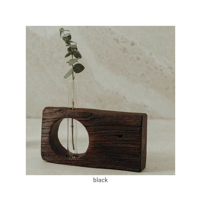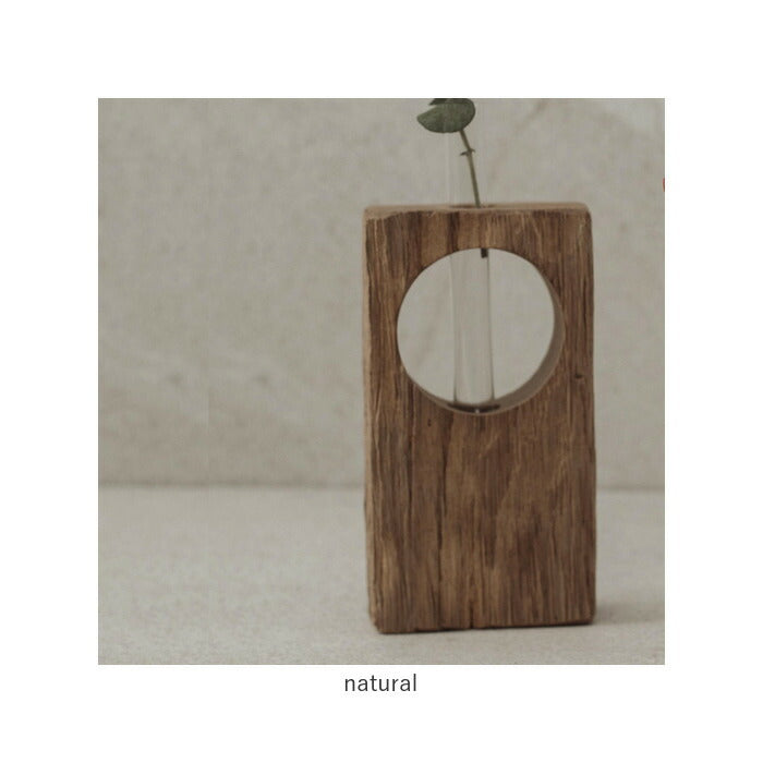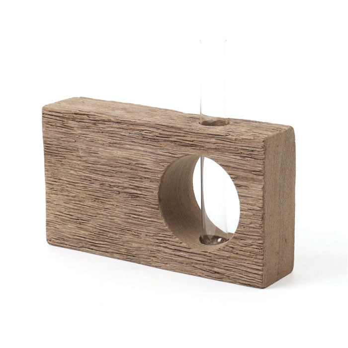 フラワーベース 古材 丸窓 通販 花瓶 一輪挿し 試験管 Flower vas 花器 フラワー お花 丸穴 木製 木目 木のぬくもり チーク素材 チーク材 ウッド ガラス インテリア 雑貨 タイ 上質 北欧