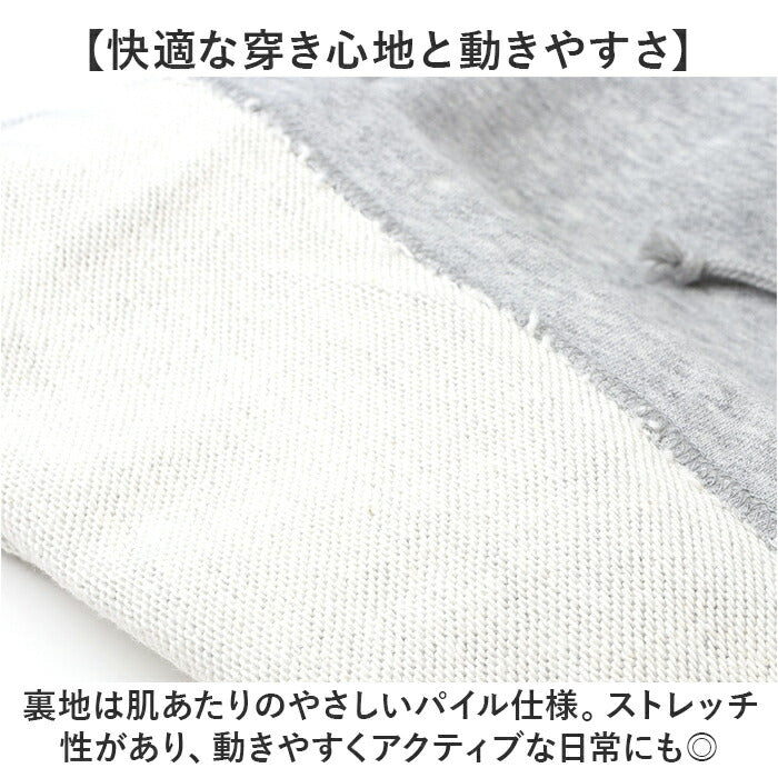 ・裏地は肌あたりのやさしいパイル仕様。ストレッチ性があり、動きやすくアクティブな日常にも◎