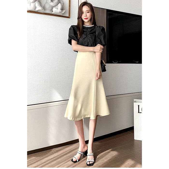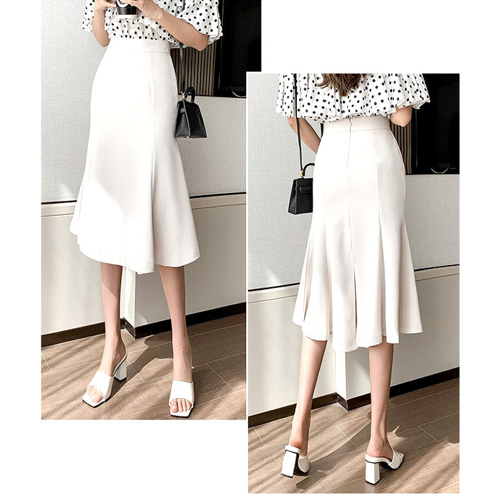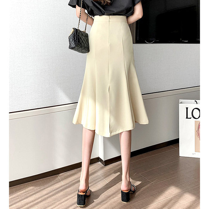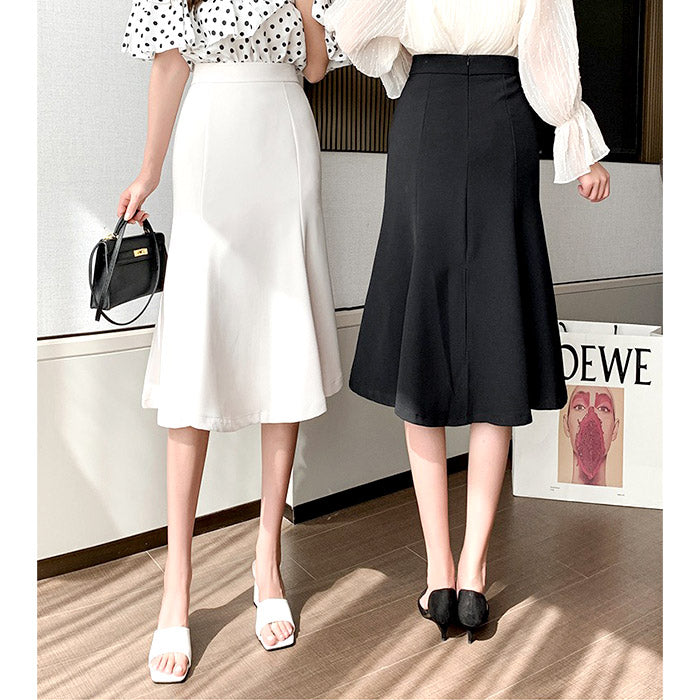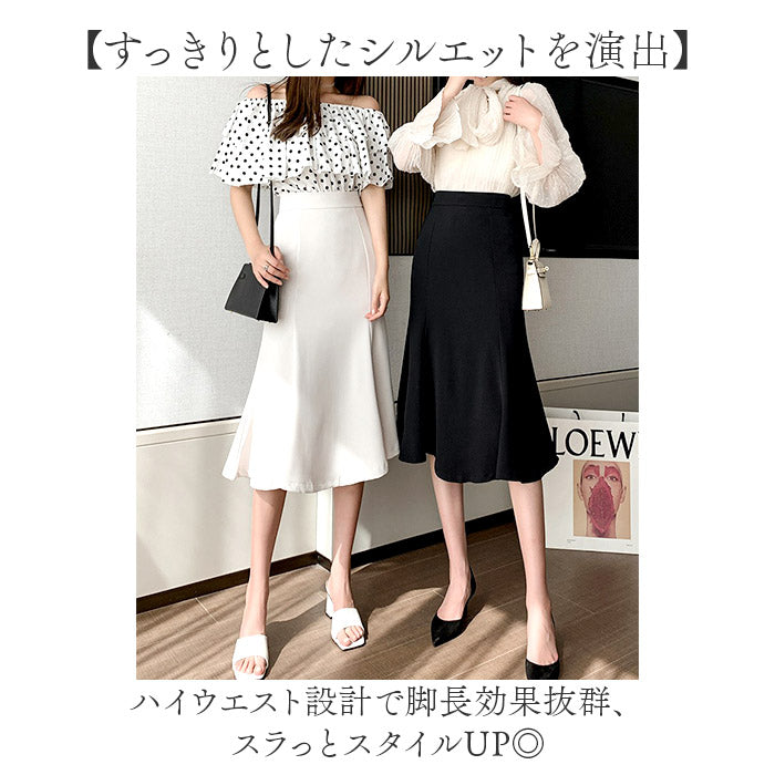 ・オフィスにもデートにも使える万能ミモレ丈スカート。