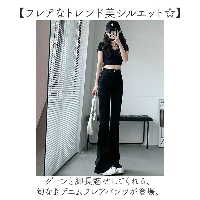 ・グーンと脚長魅せしてくれる、旬な♪ デニムフレアパンツが登場。