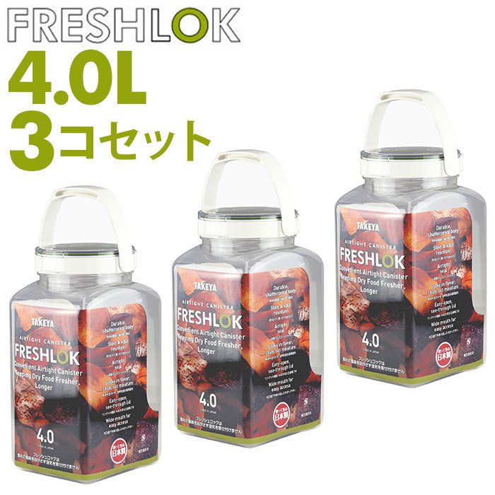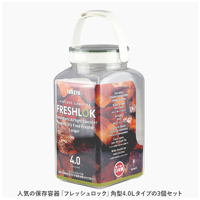 フレッシュロック 4.0 セット 通販 FRESHLOK 角型 4.0L 3個セット 4000ml 保存容器 密閉 密閉容器 密閉保存容器 キャニスター プラスチック グリーンパッキン ワンタッチ 軽い 軽量