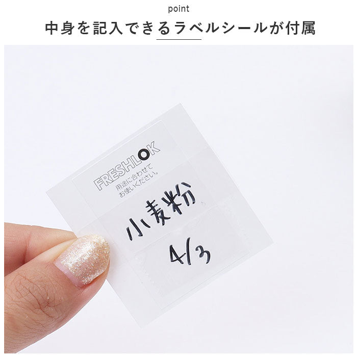 ・小麦粉やプロテインなどの粉もの、お米、シリアル、ショートパスタなどはもちろん、ペットフードの保存にも!中身を記入できるラベルシールが付属。