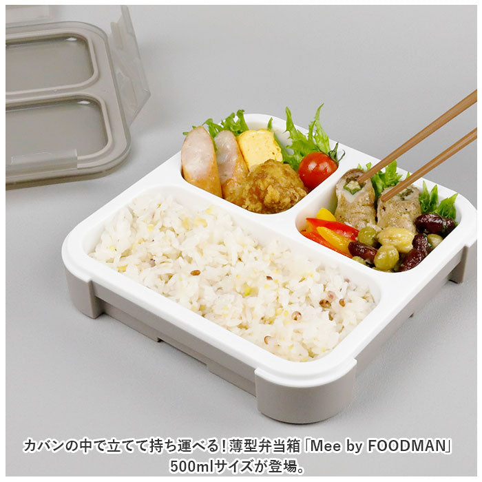 フードマン 500 通販 弁当箱 Mee by foodman フードマン弁当箱 ランチボックス スリム 立てて運べる 1段 500ml お弁当箱 一段 女子 大人 一体型 仕切り 薄型 漏れにくい 密閉 食洗機対応