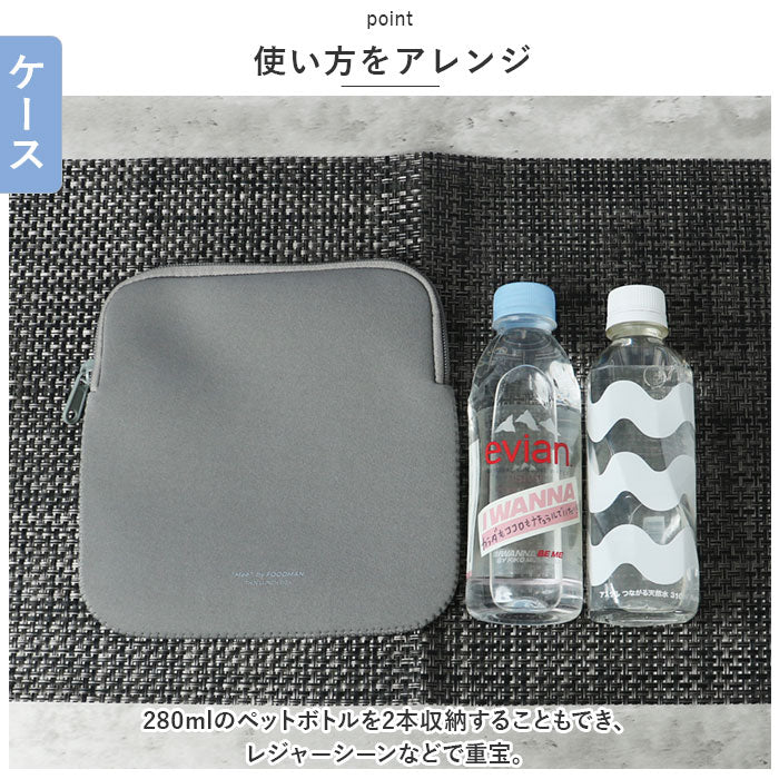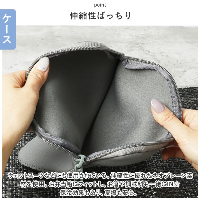 ・ウェットスーツなどにも使用されている、伸縮性に優れたネオプレーン素材を使用。お弁当箱にフィットし、お箸や調味料も一緒にIN☆保冷効果も!