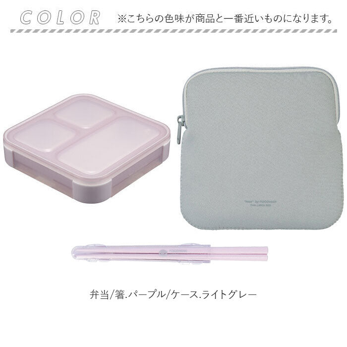 ・お弁当箱・専用ケース・お箸の3点セット。厚みわずか3.5cmのコンパクトなお弁当箱に、ぴったりサイズのケースとお箸。お弁当箱とお箸は食洗機対応。