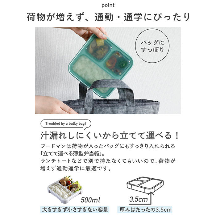 フードマン 500ml 3点セット 通販 FOODMAN 弁当箱 ランチボックス スリム 立てて運べる 1段 500 お弁当箱 一段 箸付き 大人 女子 おはし お箸 お弁当袋 お弁当包み 弁当ケース シンプル