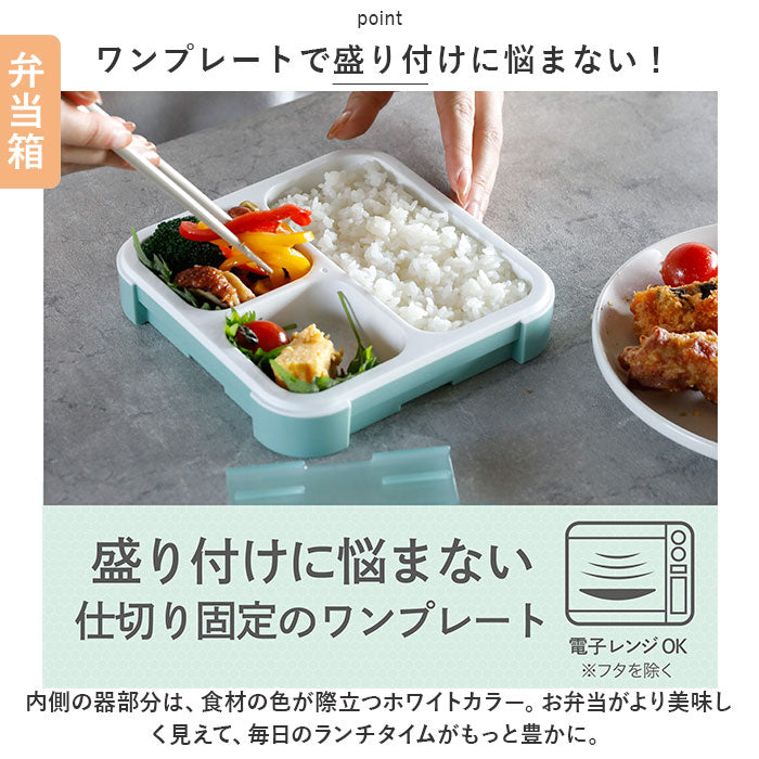 ・一体型の固定された中仕切りを装備。仕切りに合わせて詰めるだけで、簡単にお弁当が完成☆内側の器部分は、食材の色が際立つホワイトカラー。