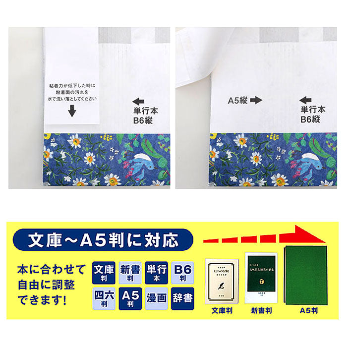 ・お気に入りのあの本やこの本をお好みのデザインでラッピング♪文庫本~A5版まで自由にサイズを変えられるブックカバー。