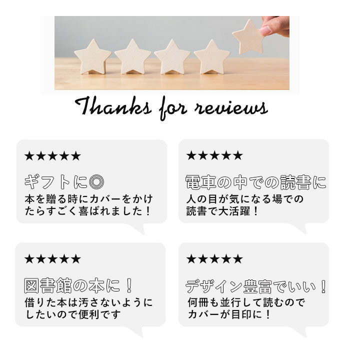 ・本体の縦と横に主要な本のサイズに対応した折り筋が付いているので初めてでもカンタンに使えて便利★繰り返し使えるのでコスパも◎。読書ライフをお気に入りのカバーで楽しんで♪