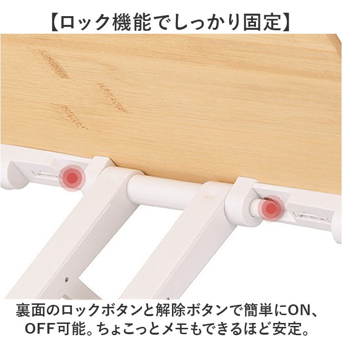 ・裏面のロックボタンと解除ボタンで簡単にON、OFF可能。ちょこっとメモもできるほど安定。