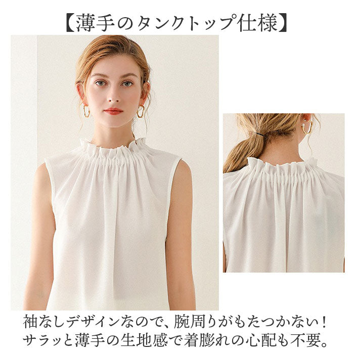 ブラウス シフォン レディース 通販 フリルブラウス トップス ノースリーブ タンクトップ おしゃれ きれいめ ビジネス オフィス オフィスカジュアル フリル シャツブラウス 春夏 夏服