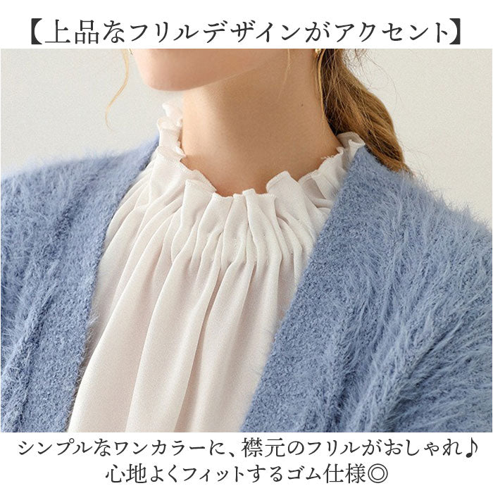 ・シンプルなワンカラーに、襟元のフリルがおしゃれ♪心地よくフィットするゴム仕様◎