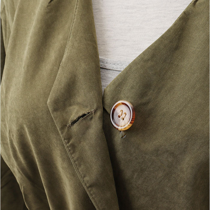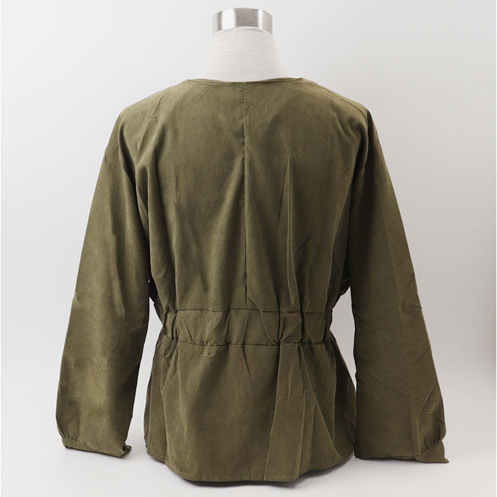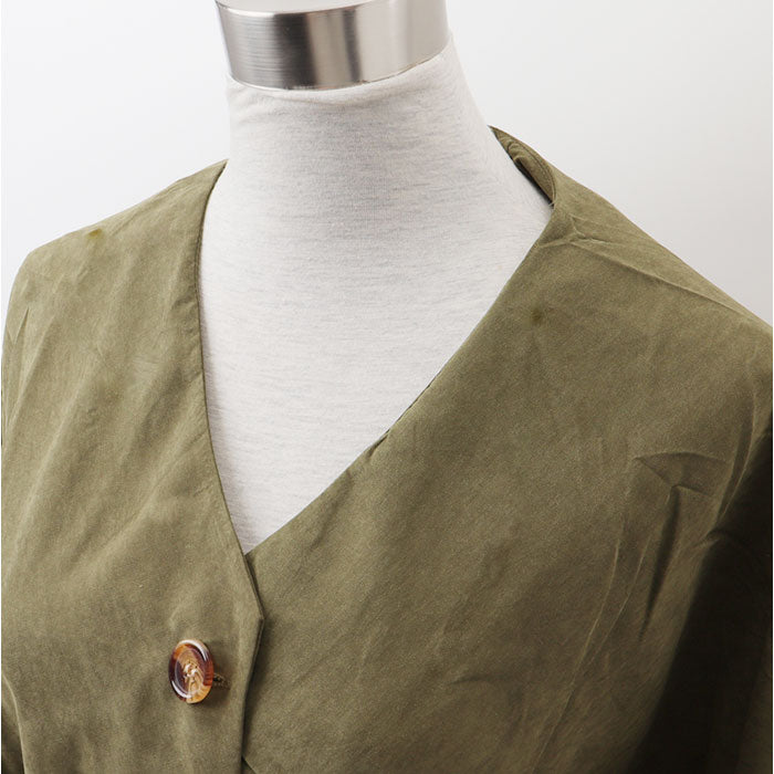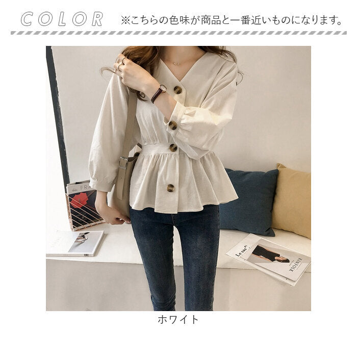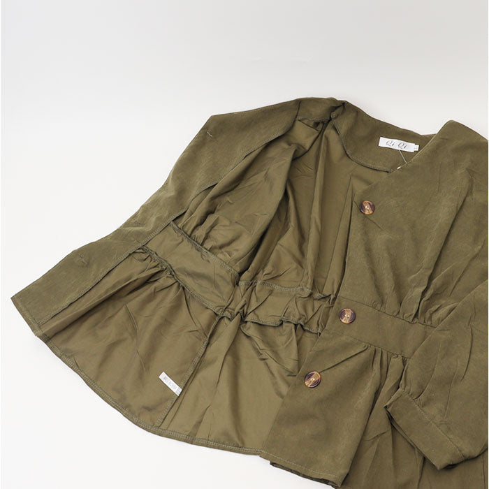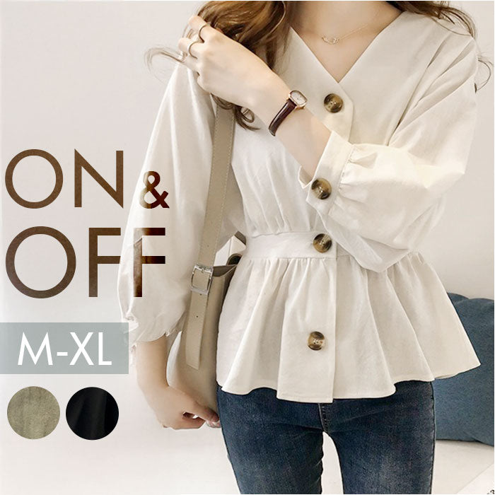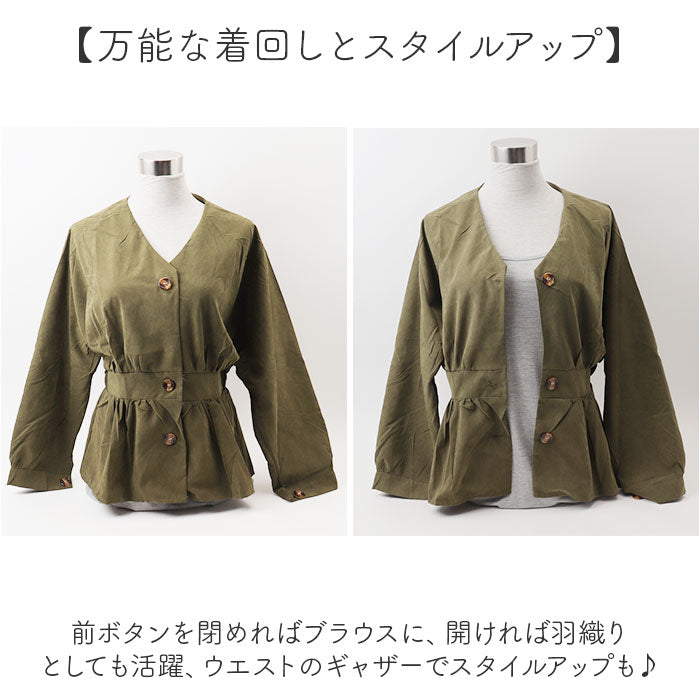 ・前ボタンを閉めればブラウスに、開ければ羽織りとしても活躍、ウエストのギャザーでスタイルアップも♪