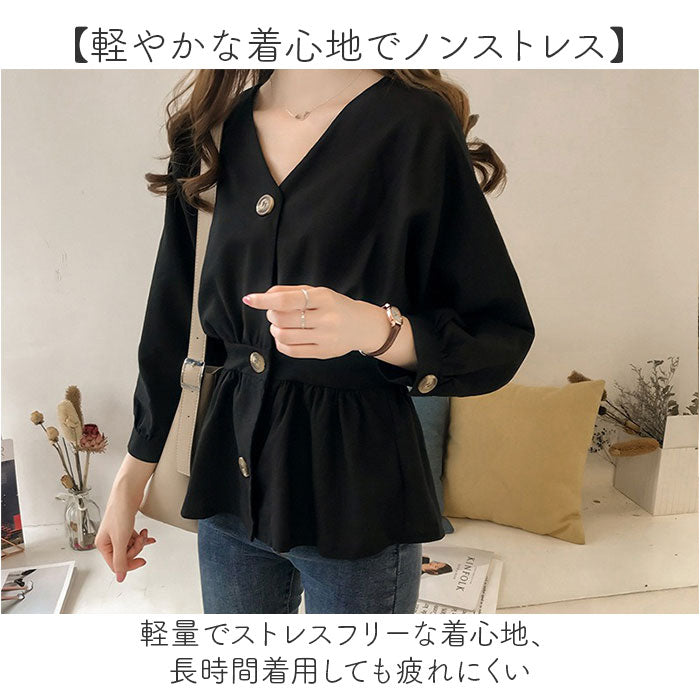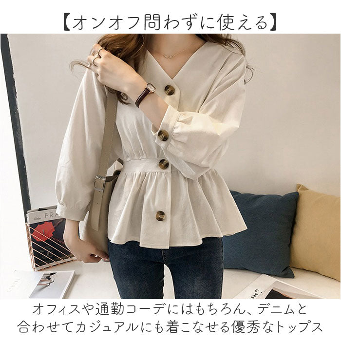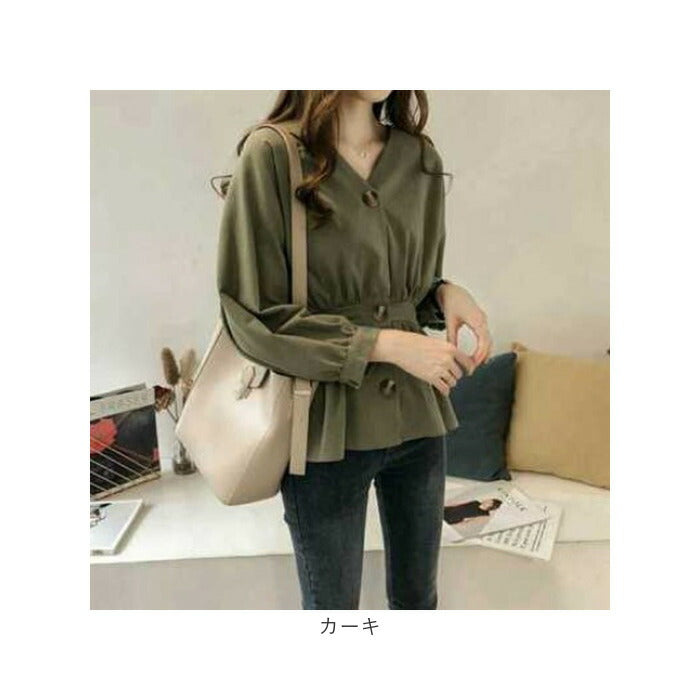 ブラウス トップス 前ボタン 長袖