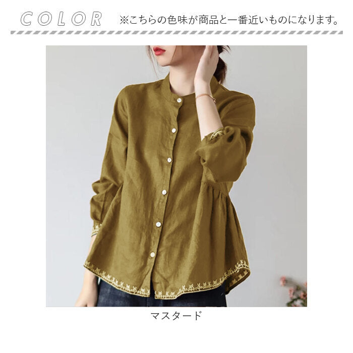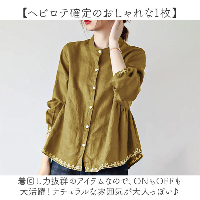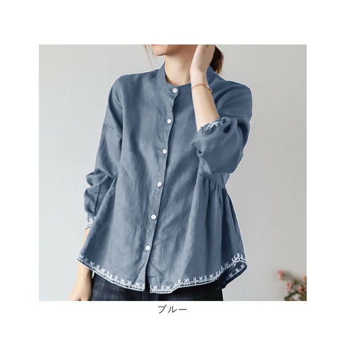 ブラウス レディース シャツ 通販 前開き 薄手 トップス 春夏 きれいめ オフィスカジュアル オフィス ビジネス スタンドカラーシャツ おしゃれ 上品 カジュアル オシャレ 可愛い